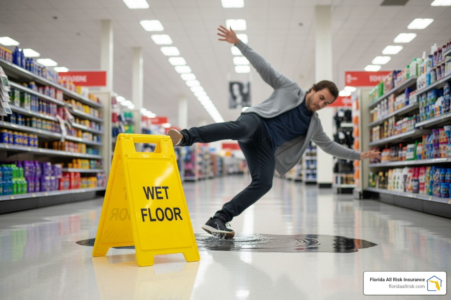 🔹 Slip and fall accidents are the leading cause of store injury claims in Texas. Wet floors, freshly waxed surfaces, spilled liquids, and tracked-in rainwater all present serious hazards when not promptly addressed or marked.